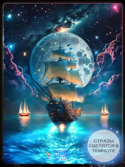 Алмазная мозаика на подрамнике 40х50 светящиеся стразы Луна