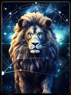 Алмазная мозаика на подрамнике «Лев», знак зодиака