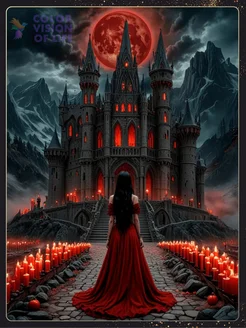 Алмазная мозаика на подрамнике «Девушка в красном у замка»