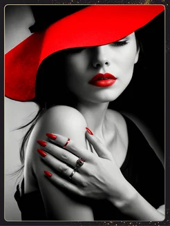 Алмазная мозаика на подрамнике «Загадочная девушка в шляпе»
