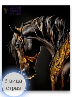 Алмазная мозаика на подрамнике 40x50 "Вороной конь"