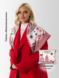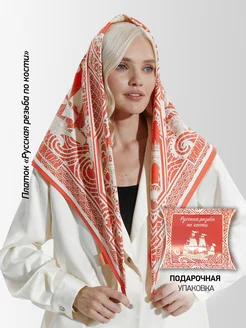 Платок на шею и голову шелковый "Дымковская игрушка"