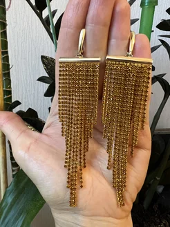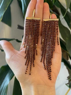 Серьги коричневые бижутерия висячие праздничные