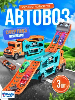 Автотрек с машинками - детский автовоз трейлер