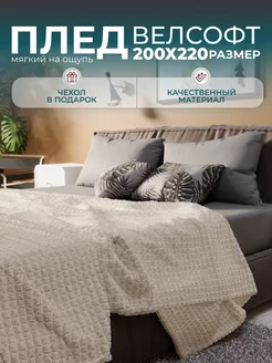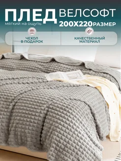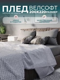 Плед пушистый стеганный велсофт на кровать и диван 200х220