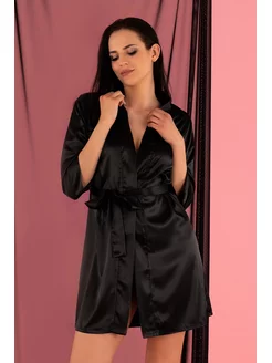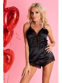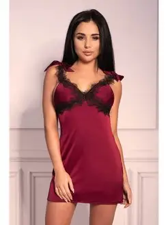 Короткая бордовая сорочка с черным кружевным декором
