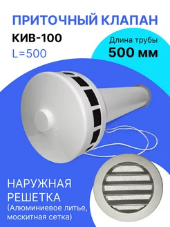 Приточный клапан КИВ-100 ЭРА с трубой 500 мм и пласт. решет