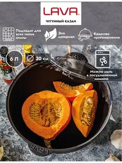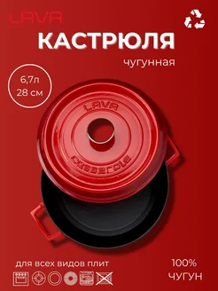 Чугунная кастрюля-казан с крышкой 6.7 л эмалированный