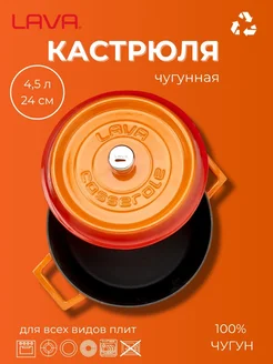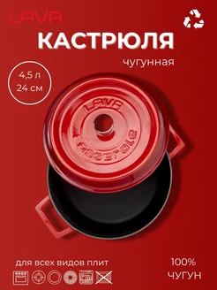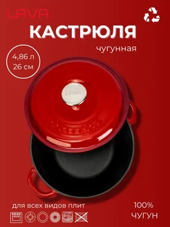 Чугунная кастрюля-казан с крышкой 4.5 л кокот