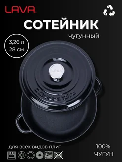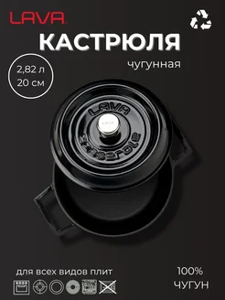 Чугунная кастрюля-казан с крышкой 2,82 л кокот эмалированный