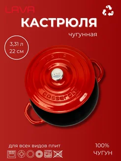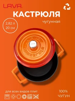 Чугунная кастрюля-казан с крышкой 2.82 л кокот