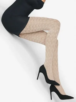 Колготки теплые жаккард кремовые под вязаное платье Польша