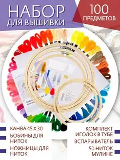 Пяльцы с нитками и иглами вышивания мулине крестом набор