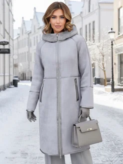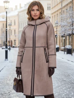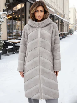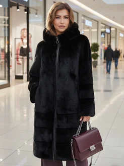Зимняя двусторонняя шуба дублёнка с капюшоном под норку