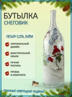 Новогодняя Бутылка Снеговик 3 с пробкой