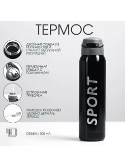 Термос 500 мл "Спорт", 5.5 х 23 см, с трубочкой