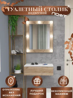 Туалетный столик подвесной с зеркалом и подсветкой, 80 см