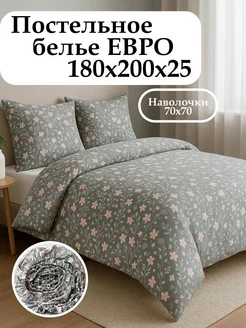 Постельное белье евро с простыней на резинке 180х200 бязь