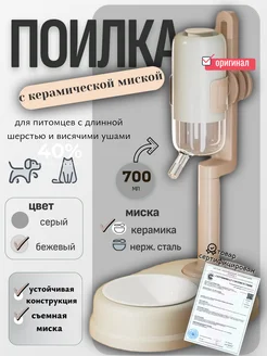 Поилка для собак с керамической миской Сухие усы