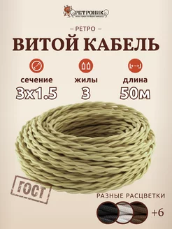 Витой ретро провод кабель электрический 3х1.5, (50 м)