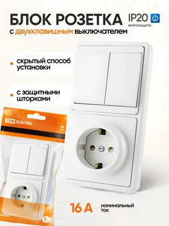 Выключатель двухклавишный с розеткой