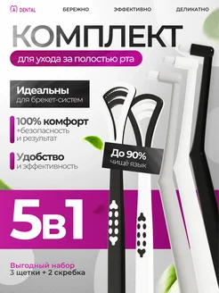Набор Монопучковая щетка 3 шт и скребок для языка 2 шт