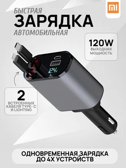 Авто зарядка в прикуриватель 4 в 1, Type-C x Lightning