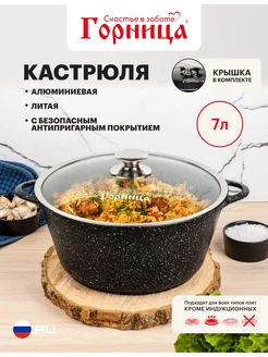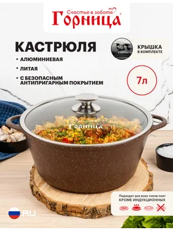 Кастрюля 7 л антипригарная литая алюминиевая крышка