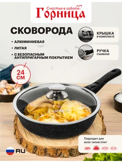 Сковорода с крышкой антипригарная литая алюминиевая 24 см