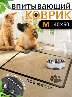 Коврик под миску и лоток для животных впитывающий, 40x60 см