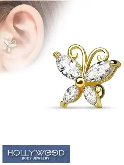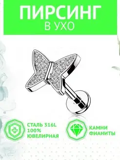 Пирсинг в ухо, хрящ, моносерьга под серебро