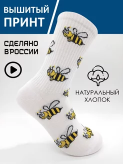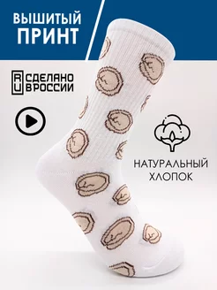 Носки с принтом белые высокие длинные в подарок