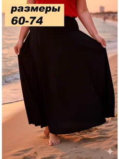 Юбка макси полусолнце больших размеров на кокетке и резинке