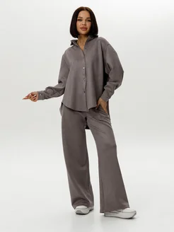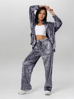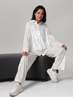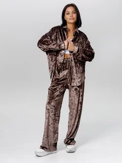 Костюм брючный двойка с рубашкой оверсайз велюровый
