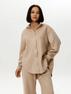 Костюм брючный двойка с рубашкой оверсайз из экозамши