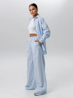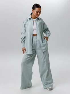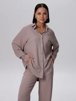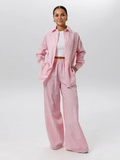 Костюм брючный с рубашкой оверсайз в рубчик