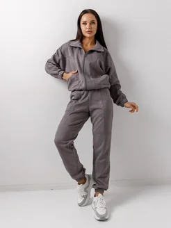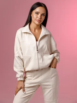 Костюм брючный двойка с бомбером оверсайз экозамша