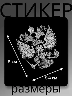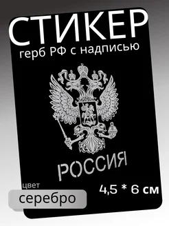 Наклейка герб России маленькая серебро орел 4,5*6 см