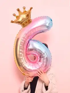 Воздушный шар цифра 6 (102 см) с короной