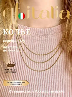 Колье серебро 925, позолота, Италия
