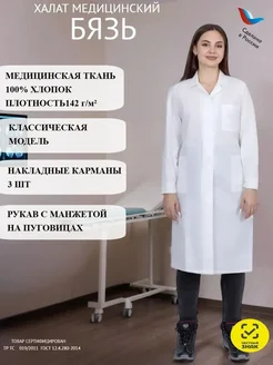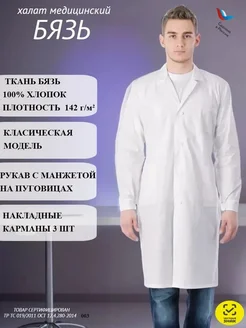 Халат белый медицинский,100% хлопок,длинный рукав "Бязь"