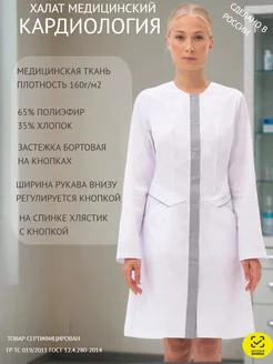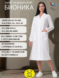 Халат медицинский с длинным рукавом,с воротником "Бионика"