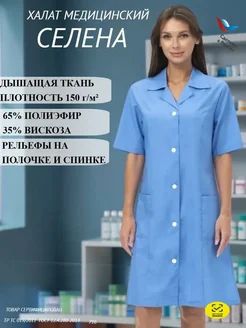 Халат медицинский белый, без воротника "Мечта" с рукавом 3 4