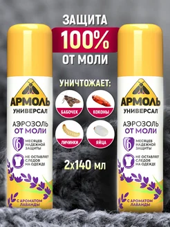 Аэрозоль спрей антимоль c ароматом лаванды, 140 мл 2 шт