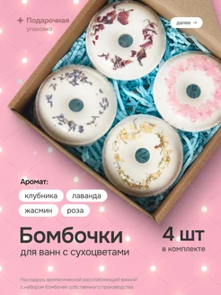 Бомбочки пончики для ванны подарочный набор 4 штуки