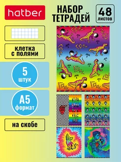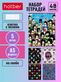 Тетрадь 48 листов клетка 5 дизайнов 5 штук