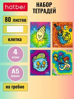 Тетрадь 80 листов клетка 4 дизайна 4шт