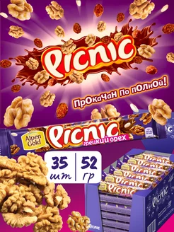 Батончик шоколадный Пикник Грецкий орех 52гр, 35шт уп