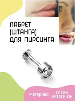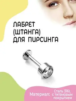 Лабрет в ухо титан пирсинг в нос. Серьга с фианитом в хеликс