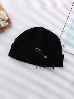 Шапка осенняя бини вязаная с дырками и отворотом